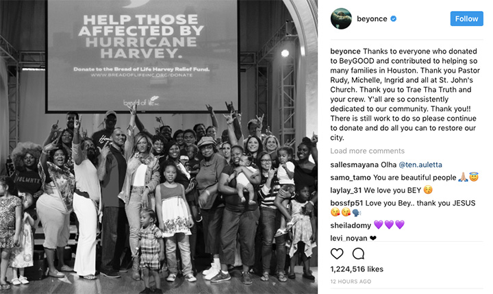 Expect to see Bey continue her initiative to help those impacted by the devastating effects of Harvey in an upcoming hour-long telethon called Hand in Hand: A Benefit for Hurricane Harvey Relief. Alongside names like Oprah Winfrey, Julia Roberts, George Clooney and others, the pop titan will urge viewers to donate during the broadcast, which is scheduled to air Sep. 12 at 8 PM ET across major networks.