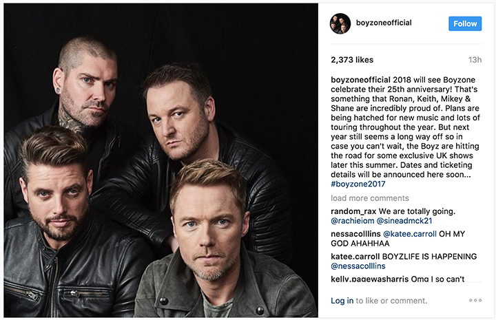 Ronan Keating, Keith Duffy, Shane Lynch and Mikey Graham shared a new photo on Instagram along with the exciting news for fans of the Irish group.