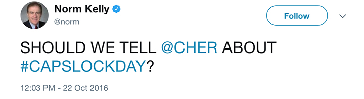 Last year, Kelly tweeted about Cher’s habit of using all caps.
