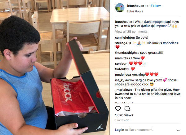 Prior to his shelter visit, Drake made a stop at a local high school and treated students to a performance and a $25,000 cheque for school uniforms.