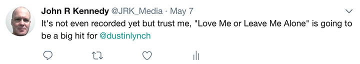 We've already heard two tracks off the album, "Seein' Red" and "Small Town Boy.” The next track you'll get to hear is "Love Me or Leave Me Alone.” It's a song Lynch has been playing live for awhile, and says it hits him in the gut every night he sings it.