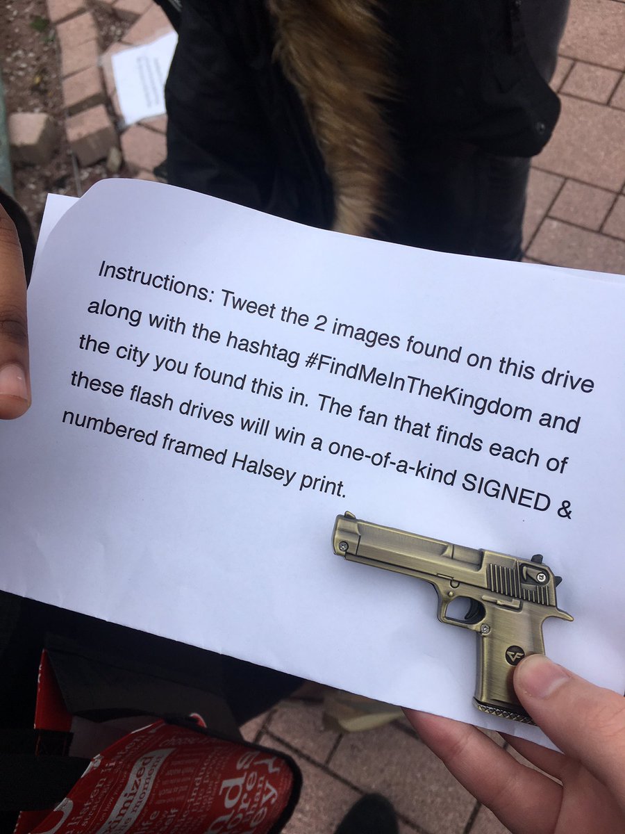 The USBs came with instructions on how to upload them online. “Tweet the 2 images found on this drive along with the hashtag #FindMeInTheKingdom and the city you found this in,” they read.