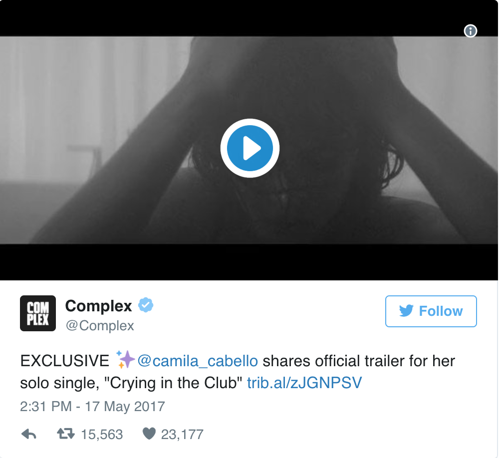 "Crying in the Club" was co-written by Cabello, Sia and Benny Blanco. Cabello is slated to perform at Sunday's 2017 Billboard Music Awards, so expect the budding star's television debut of the track during the ceremony, which airs on ABC at 8 p.m. EST / 7 p.m. CST.
