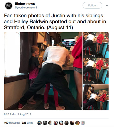 Justin Bieber and Hailey Baldwin were spotted out-and-about in his hometown Stratford, Ont. on Saturday.
