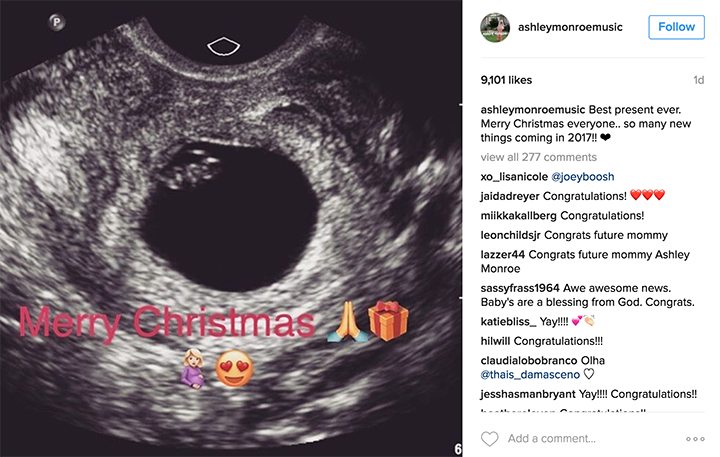 The 30-year-old singer posted a sonogram image on Instagram. "Best present ever. Merry Christmas everyone.. so many new things coming in 2017!!"