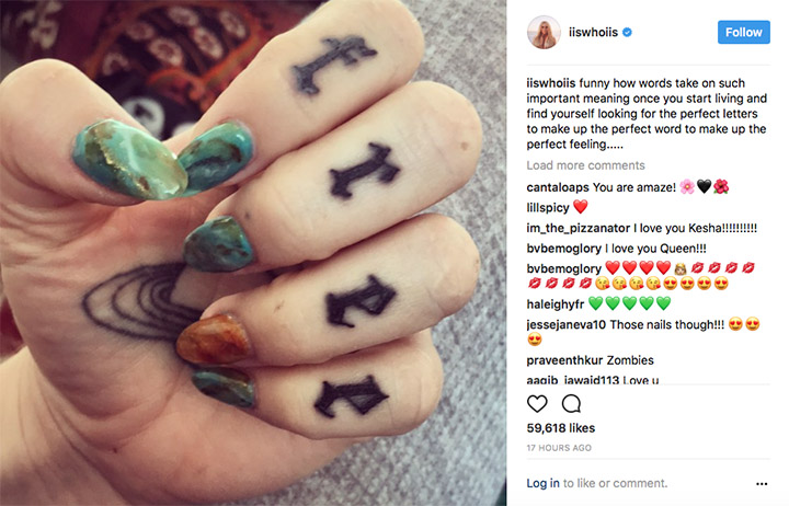 The singer took to social media to show off a bold new tattoo with the words: "live free" on her knuckles.