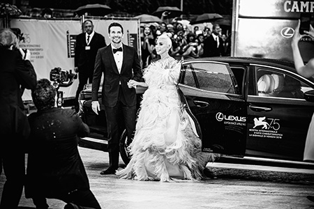 The pop singer and co-star Bradley Cooper turned heads while walking the red carpet hand-in-hand at the Venice Film Festival to see their film make its silver screen debut.