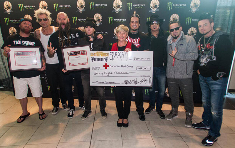 Rock bands Papa Roach, Five Finger Death Punch and Sixx:A.M. were recognized recently by the Canadian Red Cross for raising $48,000 to support its disaster management work.