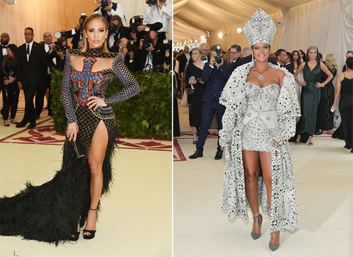 Jennifer Lopez (in Balmain); Rihanna (in Maison Margiela Artisanal)