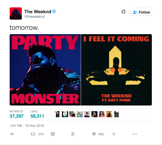 But wait! That's not it. The singer also hinted at two new tracks being released tonight. "Party Monster," and "I feel It Coming" are supposed to drop at any minute!