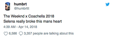 The Weeknd’s emotional performance might have been brought on from memories of him and Gomez attending the festival together last year, where he also made his first photo appearance on her Instagram.