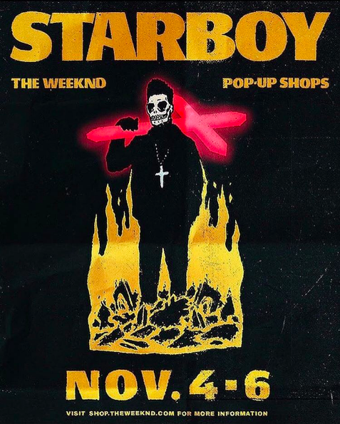 The Weeknd just announced on Twitter and Instagram that he will launch Pop-up shops on the weekend of November 4th to celebrate the release of his new album, Starboy.