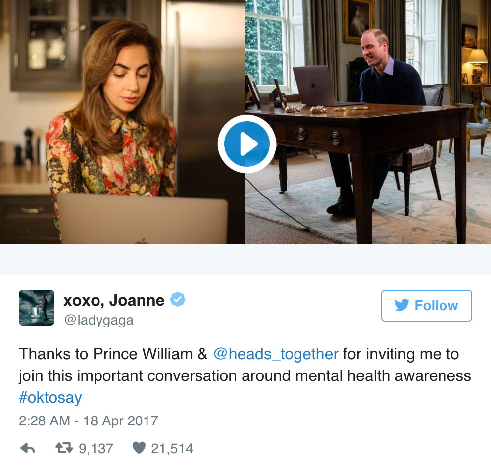 Later on in the conversation, William invited Gaga to participate in further conversations about mental health when she visits the U.K. in October.