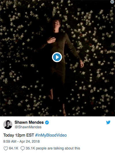 Shawn Mendes unveiled his new video for “In My Blood” on Tuesday.
